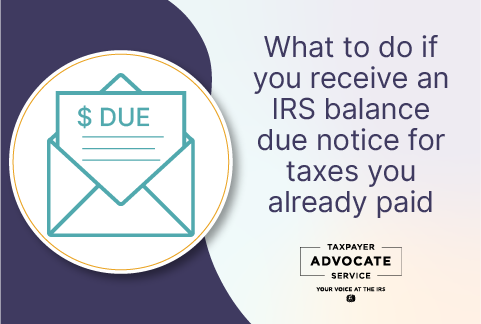 What to do if you receive an IRS balance due notice for taxes you have already paid